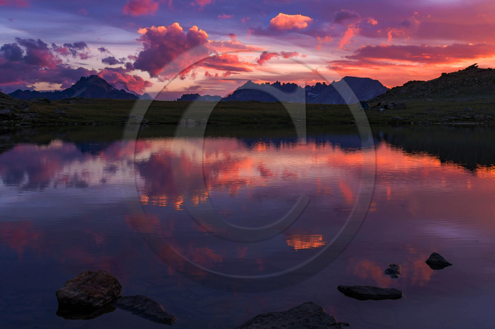 DescriptionHautes-Alpes (05), Briançonnais, Vallée de la Clarée, site naturel classé, Névache, crépuscule aux Lacs des Gardioles