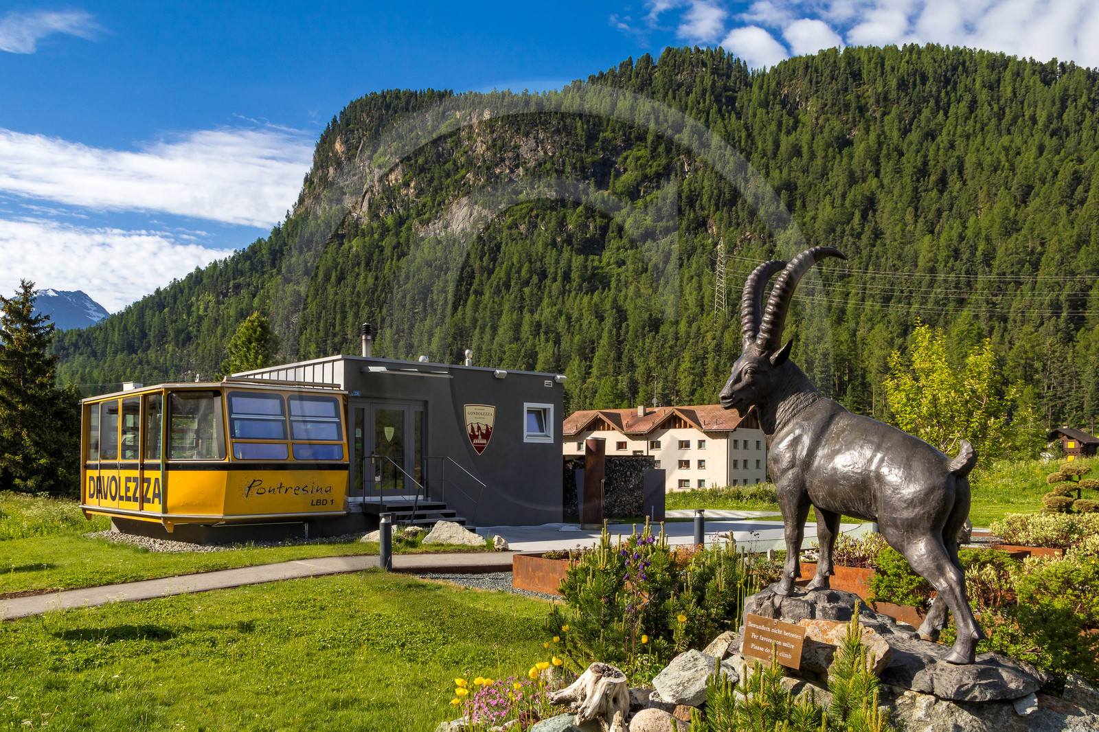 | Description | Suisse, canton des Grisons, Chemins de fer rhétiques, traversée des Alpes à bord du Bernina Express, itinéraire inscrit au patrimoine mondial de l'UNESCO, Pontresina, Restaurant Gondolezza |
