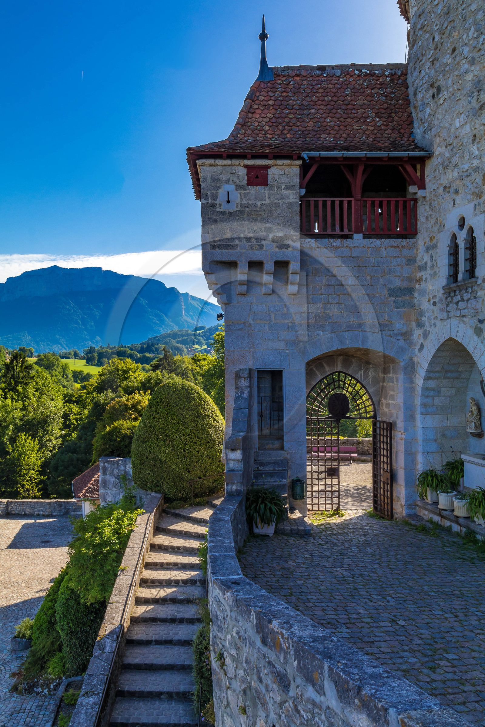 | Description | Haute-Savoie (74), Lac d'Annecy, Menthon-Saint-Bernard, Château de Menthon-Saint-Bernard, porte et grille d'entrée |