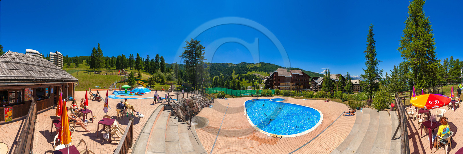 | Description | Hautes-Alpes (05), Guillestrois, Domaine de la Forêt Blanche, Station de ski de Risoul, piscine extérieure |