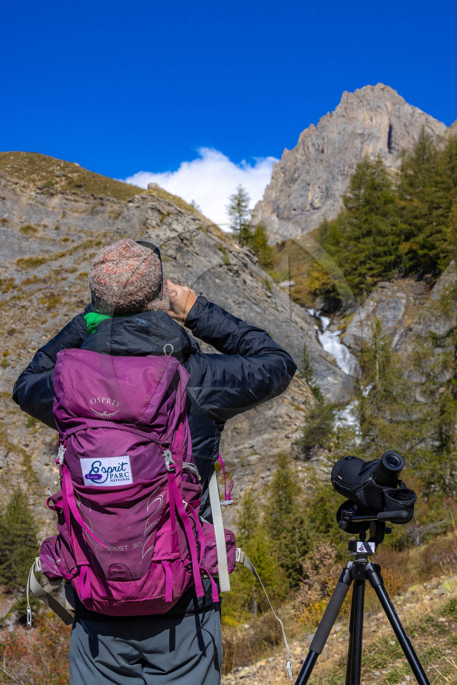 | Description | Hautes-Alpes (05), Parc national des Ecrins, Vallée de la Guisanne, Serre-Chevalier, Mountain Visa Trekking Office, hiking with Marjolaine Flammier, mid-mountain guide, ibex discovery outing |